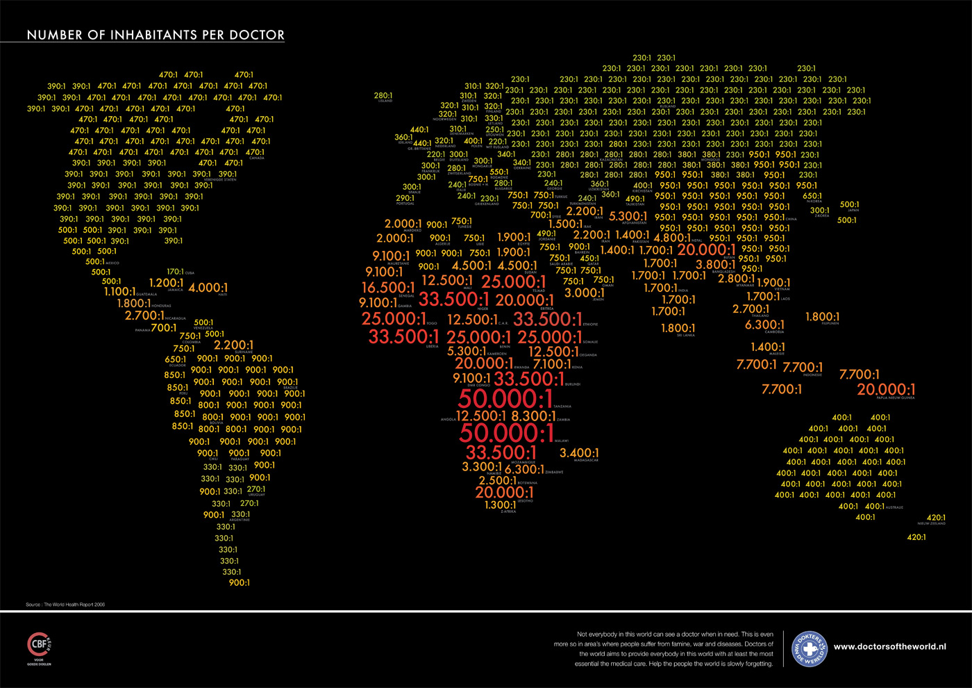 Egy 2007-es felmérés szerint Magyarország egészen jó helyzetben van a betegek és orvosok arányát illetően más országokhoz képest. Megdöbbentő példával élve, míg Etiópiában egy orvosra 33.500 beteg jut, addig Magyarországon mindössze 300. De nem kell ennyire messze mennünk! Az orvosok és betegek aránya Romániában, Nagy Britanniában, Lengyelországban is magasabb, mint nálunk. Még a fejlett skandináv országokban is több beteg jut egy orvosra, mint hazánkban. Az orvos és páciensek aránya szempontjából Kuba van a legjobb helyzetben, míg szintén előkelő pozíciót ért el az országok listáján Belgium és Oroszország.