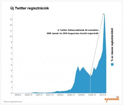 A Twitter több mint 100 millió új felhasználót szerzett 2010-ben. Ahogy az alkalmazás egyre népszerűbbé és általánosabbá vált, úgy változtak a felhasználói szokások is – állapította meg a Sysomos közösségi médiafigyelő cég összehasonlítva a Twitter 2010-es használatát a 2009 évivel.